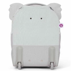 Der Trolley macht ein fröhliches Gesicht, und auch dahinter sieht es super aus. Die große Fronttasche mit Zippöffnung hat prima Platz für Spielsachen.