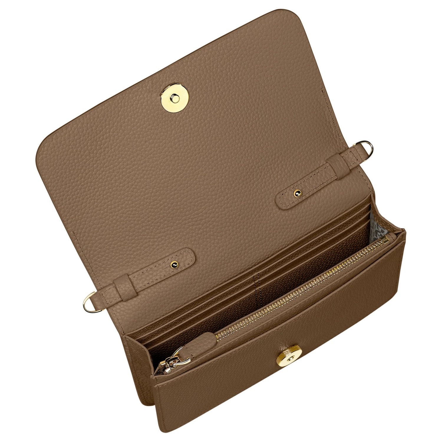 Elegante Geldbörse von Aigner mit Logo-Prägung aus Leder mit Hellgold glänzendem Logo, ein Must have. Dank der abnehmbaren Tragekette kann die Börse auch als Umhängetasche getragen werden.