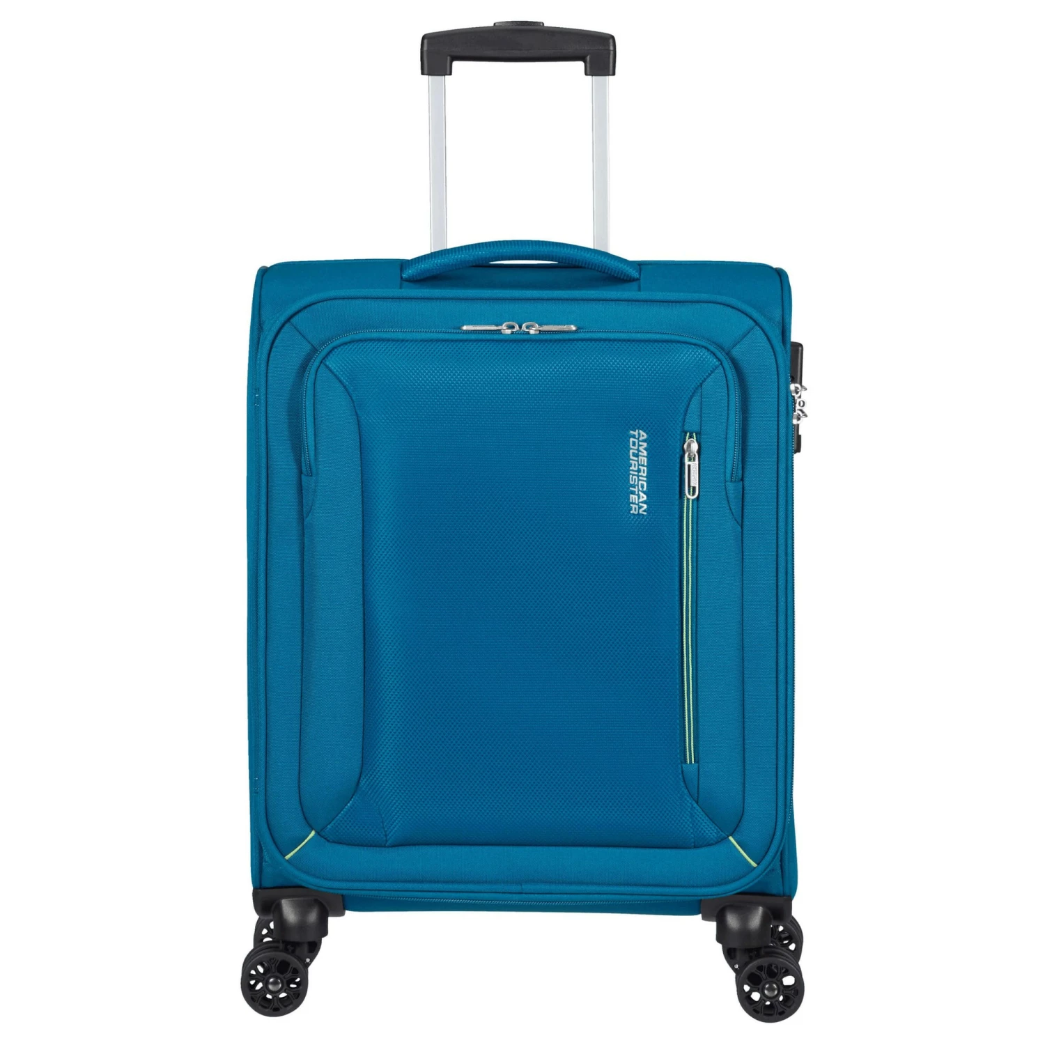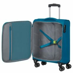 Mit der Hyperspeed-Serie präsentiert American Tourister seine neueste Softside-Kollektion. Dank der farblich abgesetzten Reißverschlüsse wirken die Koffer sportlich. Das Innenfutter der Serie besteht nachhaltig aus recycelten PET-Flaschen. Der Koffer S ist ideal als Kabinentrolley, da er die Anforderungen der Fluggesellschaften an Handgepäck erfüllt. Dank zweier Reißverschluss-Frontfächer haben Sie Ihre Flugtickets etc. schnell zur Hand.