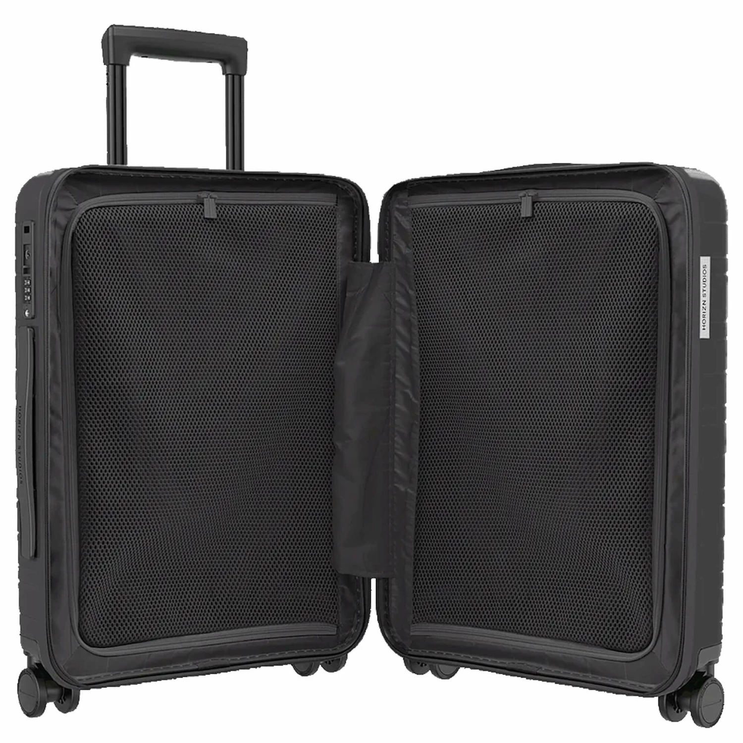Dieses Handgepäck besteht aus einer Hartschale aus Premium-Polycarbonat, wobei ein Teil davon recycelt wurde. Das Innenfutter besteht aus recyceltem Polyester. Bei der Produktion werden ausschließlich vegane Materialien verwendet. Die Kofferproduktion ist zu 99 Prozent abfallfrei.