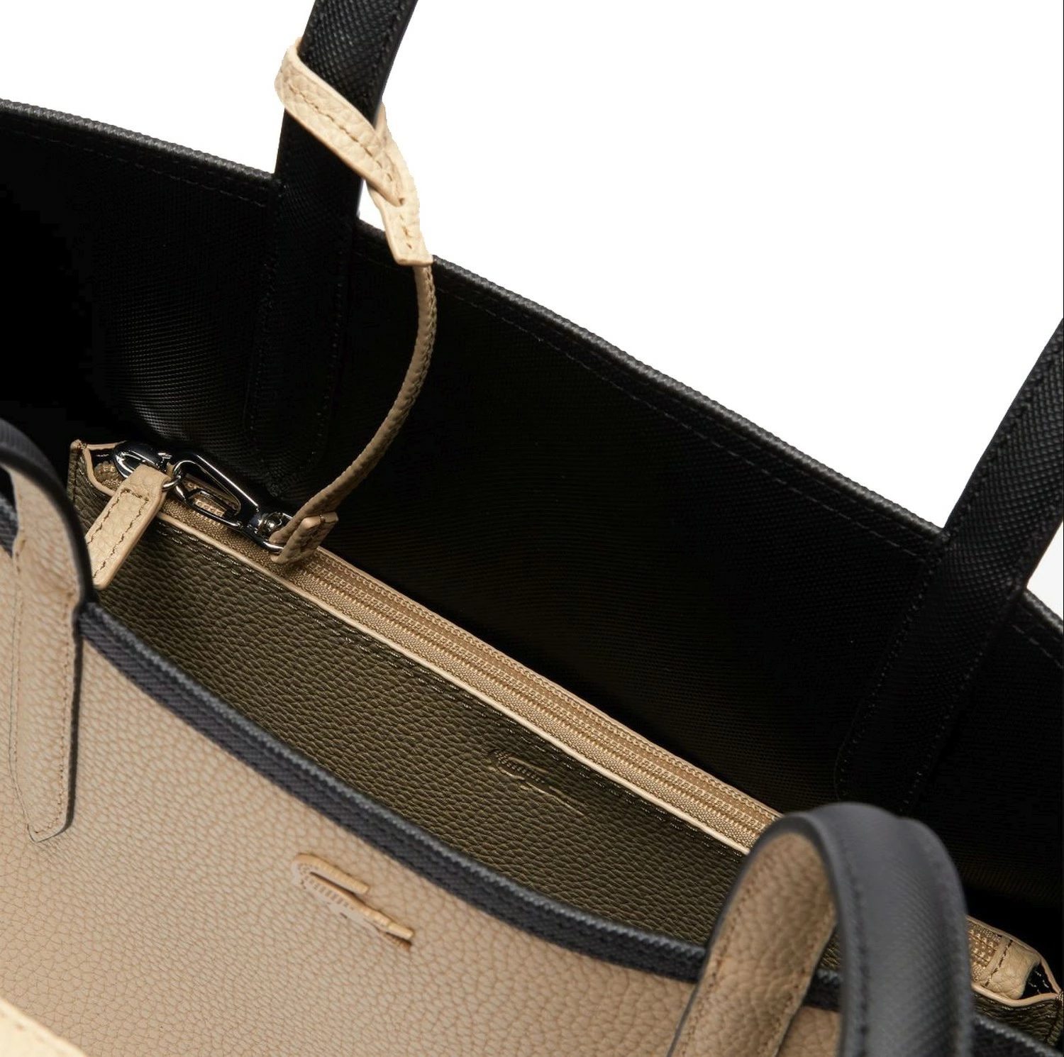 Zwei Materialien, zwei Farben, zweifacher Spaß! Freuen Sie sich auf den nächsten Einkauf mit dieser großen Tote Bag aus Canvas samt abnehmbarer Tasche.